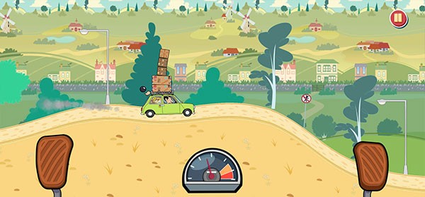 1、下载安装憨豆先生送快递大冒险后打开进入游戏,游戏的玩法很简单,按下加速踏板按钮开始行驶