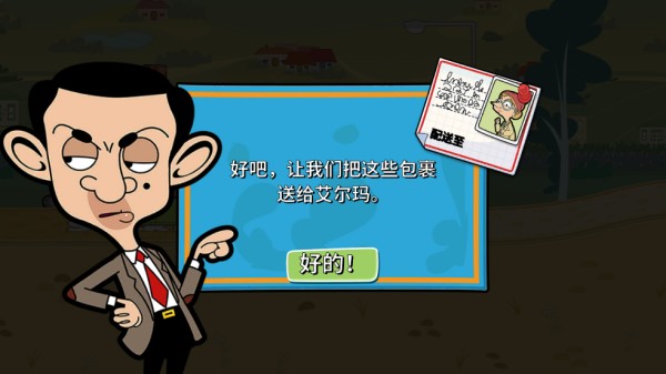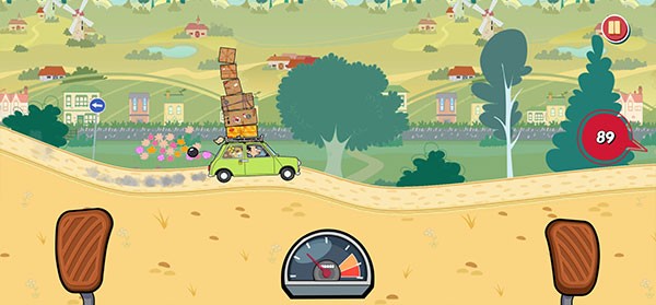 2、在这里,我们要做的就是控制憨豆先生的车子到达终点,在送快递的过程中需要小心不要将物品掉落,合理的利用刹车和加速踏板达到终点